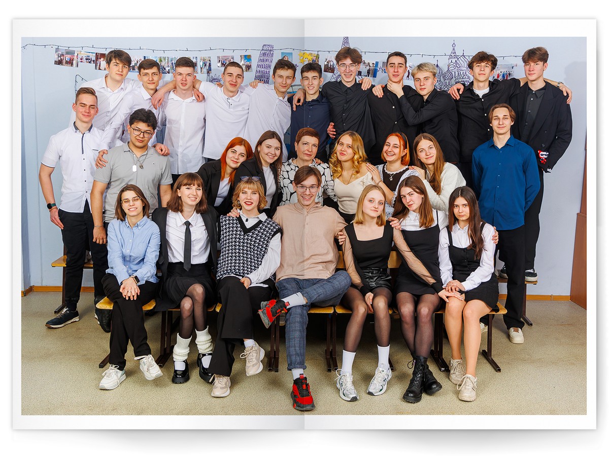 • Разворот с общей фотографией всего класса