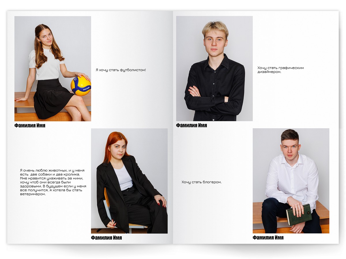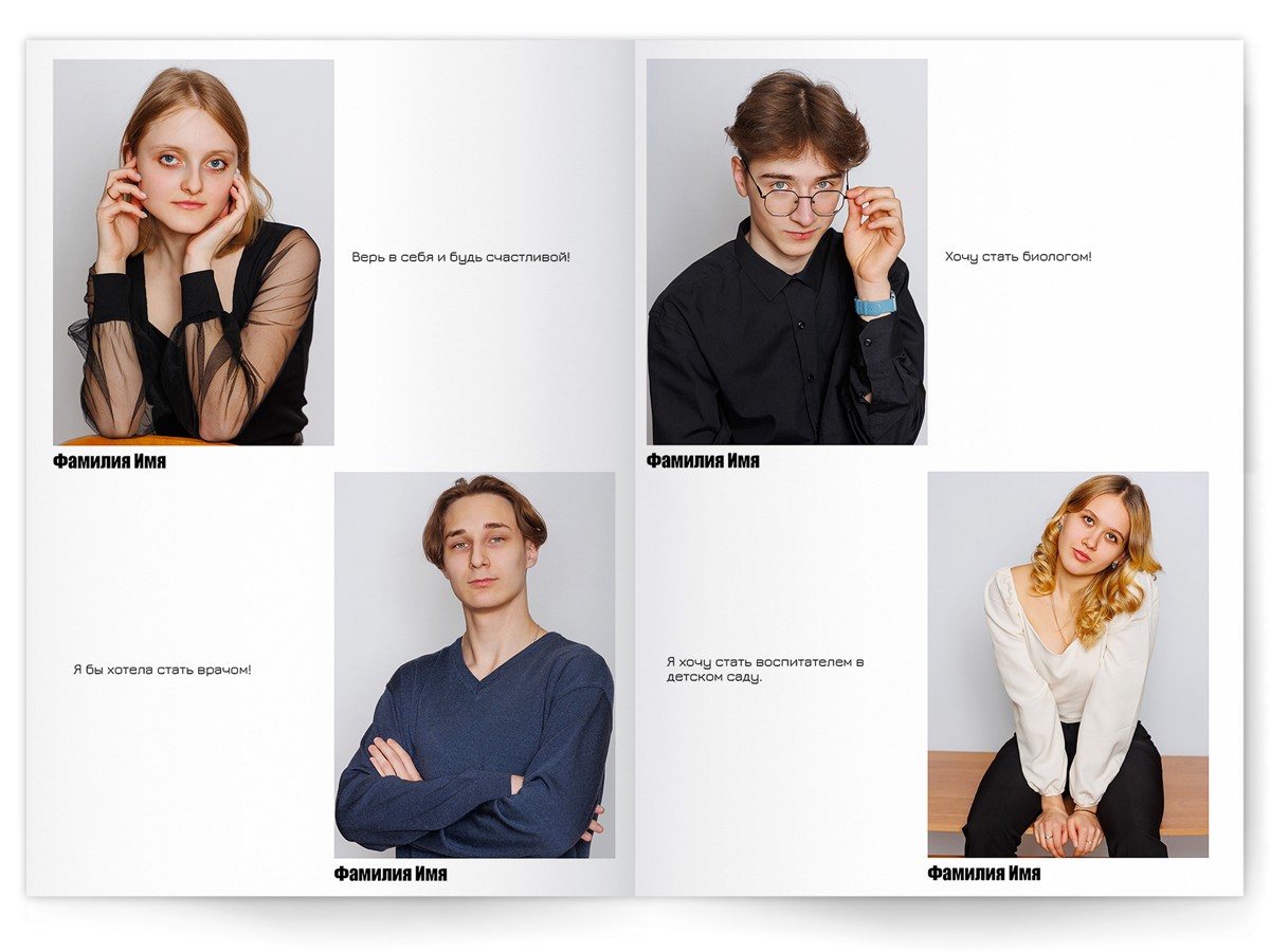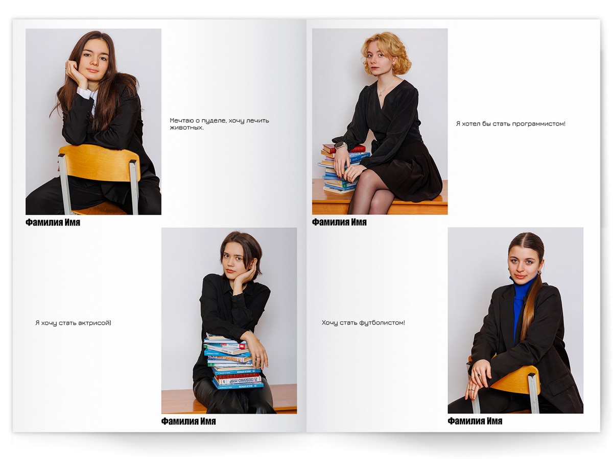 • Портреты всех одноклассников по 2 человека на страницу с историями-заметками